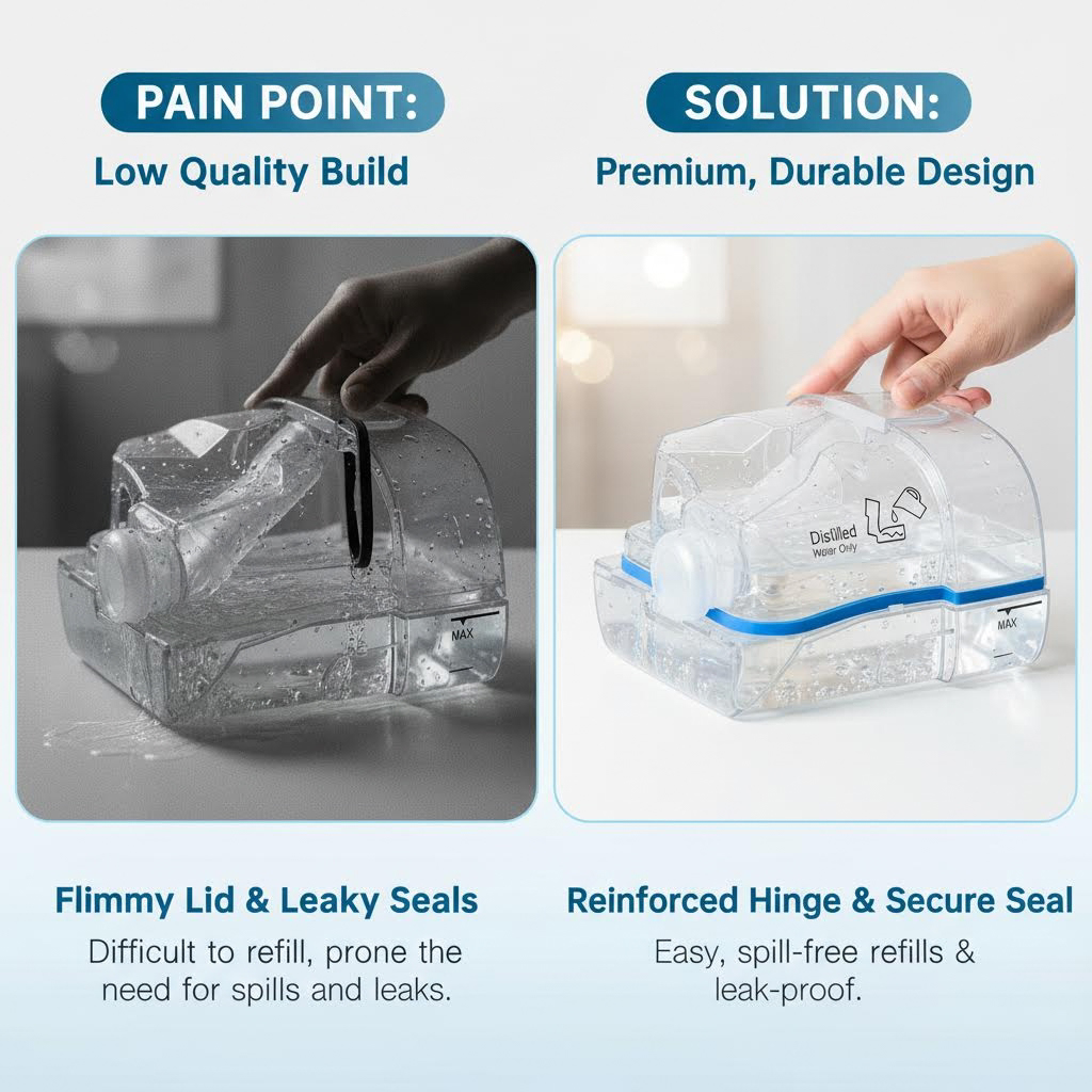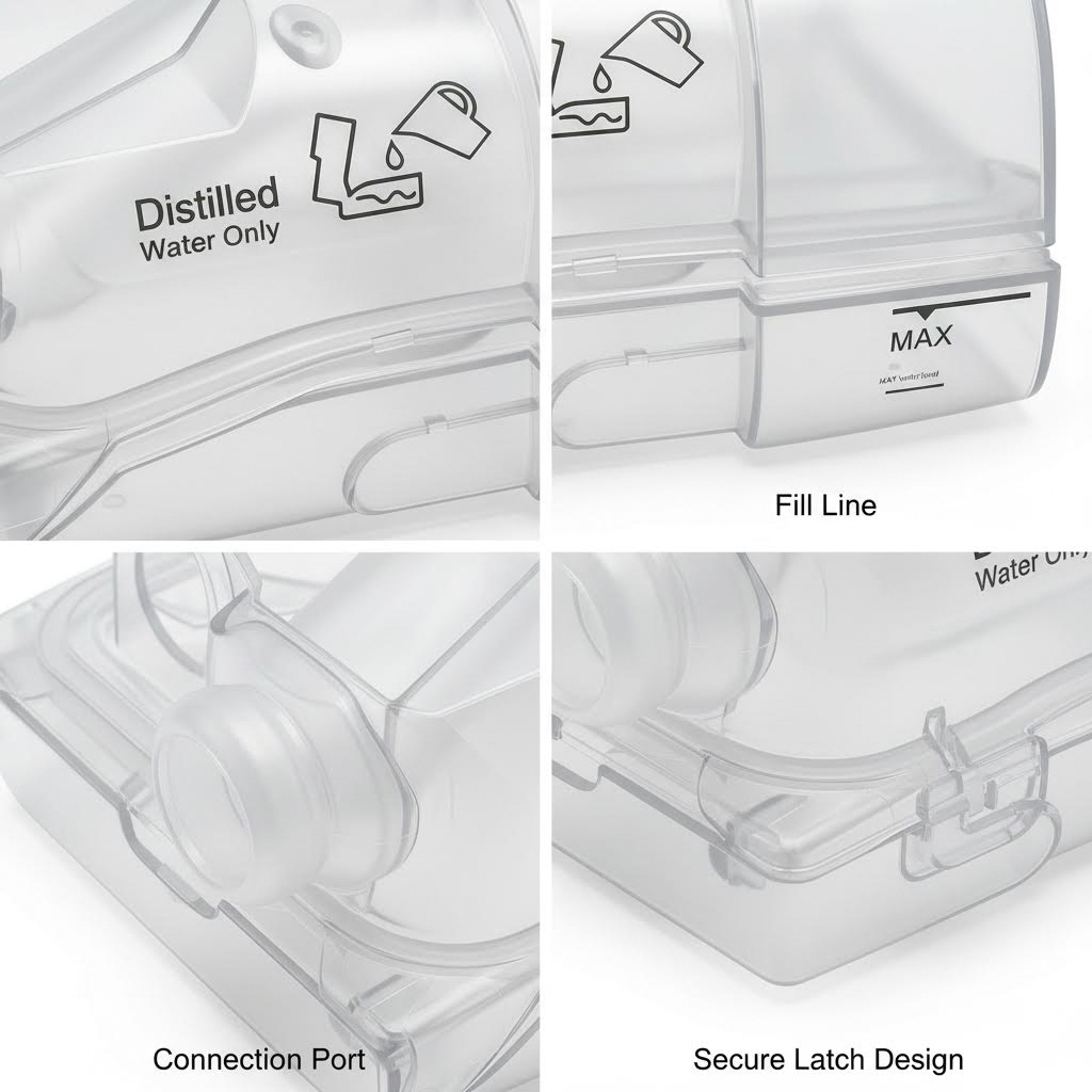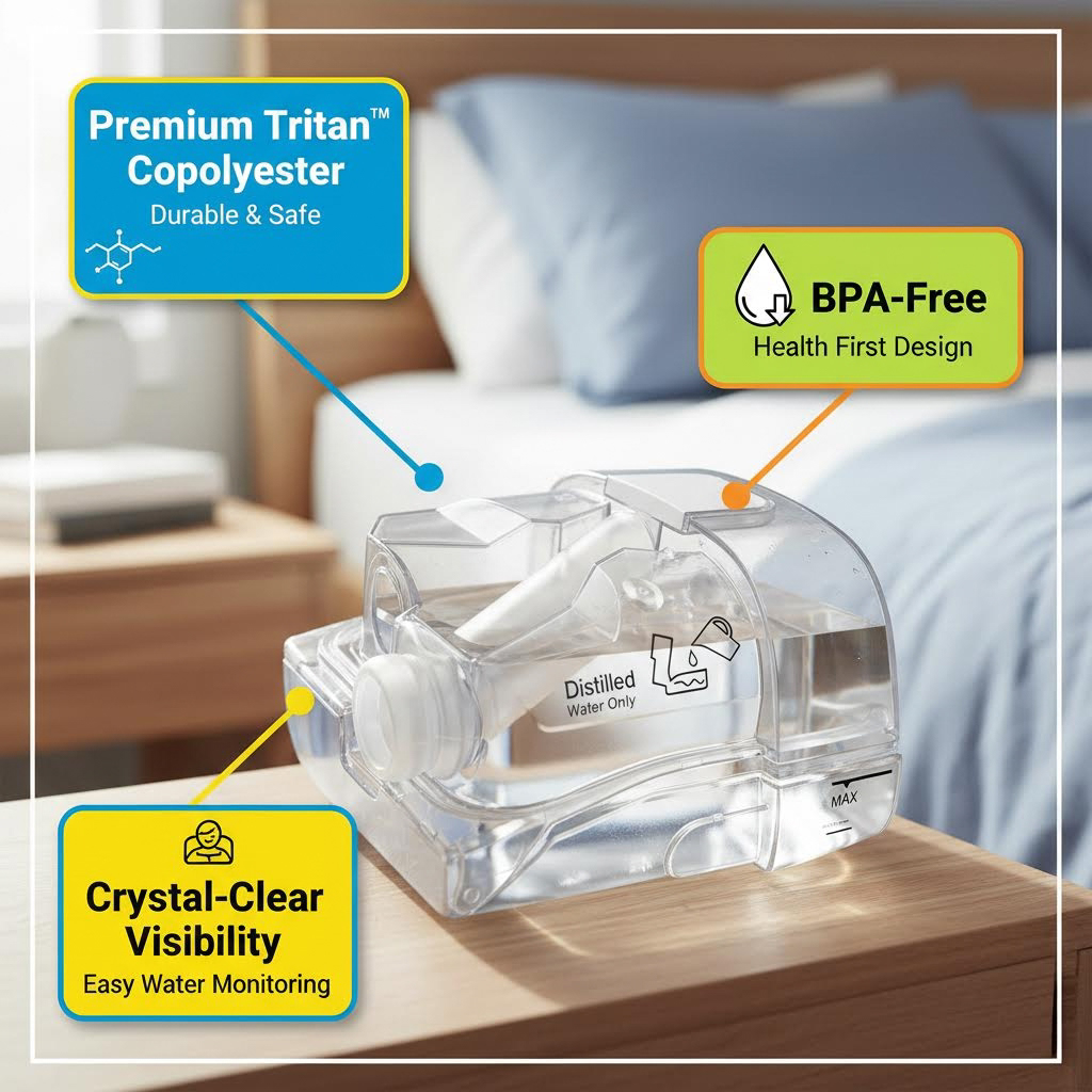 - Enhanced Comfort: The humidifier chamber adds adjustable moisture levels to airflow, preventing dry mouth or nasal discomfort, ensuring a soothing sleep environment.